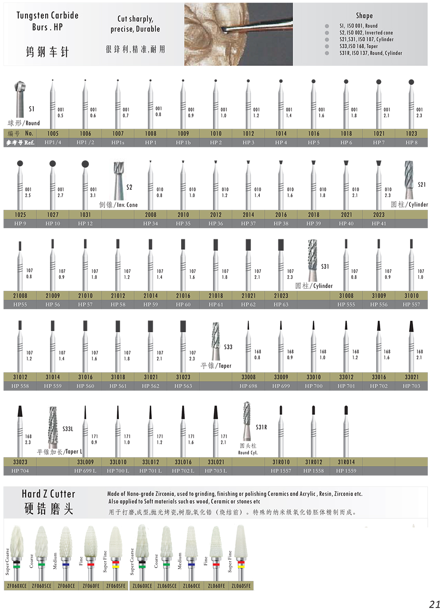 Tunsten Carbide Burs, Hard Z Cutters Collrection
