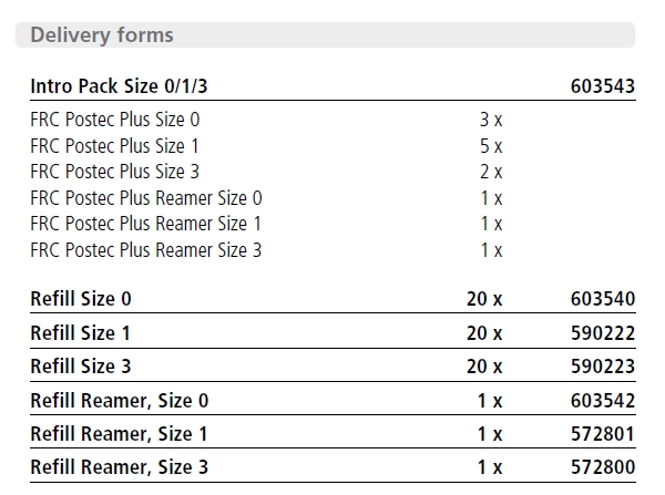 The FRC Postec Plus system consists of light-transmitting glass fibrereinforced composite posts in three sizes and includes purposedesigned stainless steel reamers for the preparation of the recipient site of the post space.