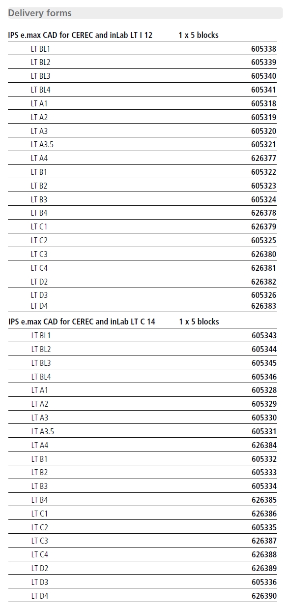 IPS e.max® CAD for CEREC® and inLab® LT / I 12 and C 14 Blocks