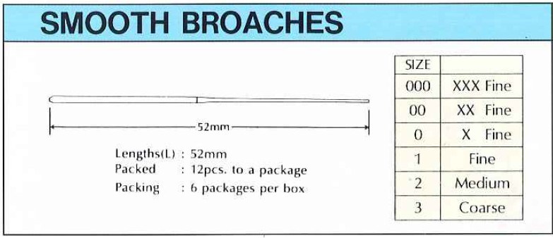 Fully elastic barbed broaches with bards enable to pull out debris or residues easily.