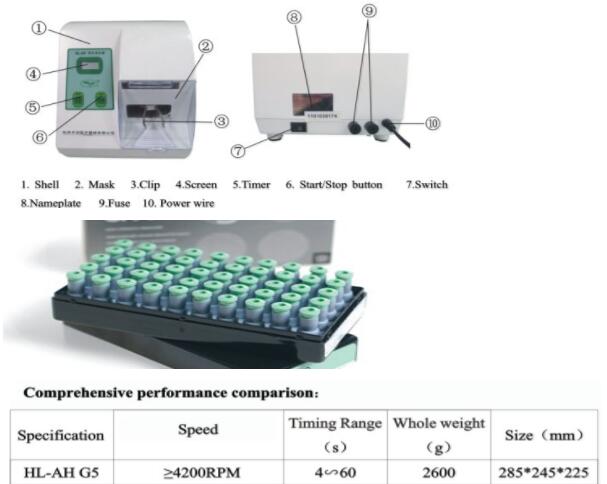 Operation: 1) Turn on the switch and press the black switch at rear device, the screen is light. 2) Set the blending time. Press the setting button shortly, the time increases 2 seconds; press it for a long time, the time increases to needed time quickly.(the highest time is 60 seconds, then it recycles to 4 seconds )and the timer is memorable.(eg. 004 stands for 4 seconds and 060 stands for 60 seconds). 3) Open the mask, put the capsule into the clip and then close the mask. (To ensure safety, the device will beep on error instead of working while the mask is open.) This setup has applied for national patent. 4) Press start/stop, the device runs, meanwhile, the screen shows the time which is decreasing accordingly until the time is over with beeping and the device stop working automatically. 5) Turn off the device and detach the capsule, the blending is ok. Suggested time of blending: