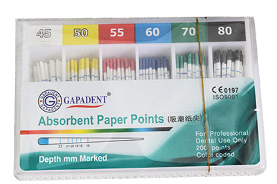 Additional Info. Trademark: Gapadent Gapadent Absorbent Paper Point / Depth mm Marked (SDT-PP24) -ISO sizes: #15, 20, 25, 30, 35, 40, 45, 50, 55, 60, 70, 80 1.Firm yet flexible for easy application