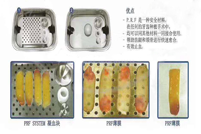 PRF P.R.F SYSTEM 1.P.R.F is a safe material that can be used together with other materials in any dental implant surgery.